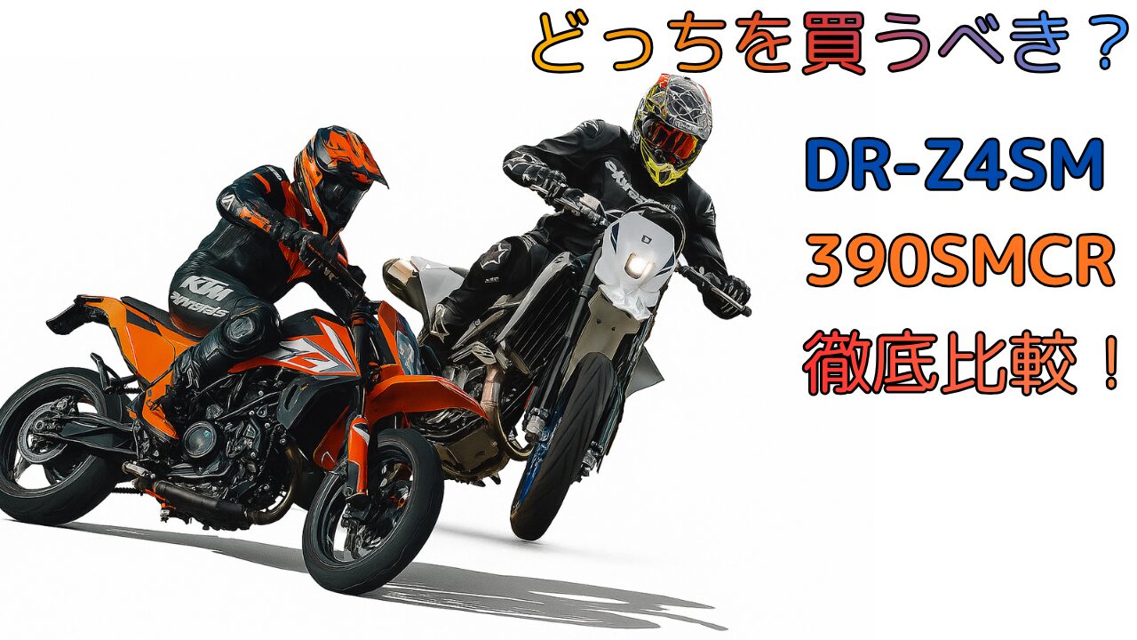 2025年はKTMから390SMCR、SUZUKIからはDR-Z4SM、カワサキからはKLX230SMとモタードが次々に発売され第二次モタードブームの兆しが見えています。そんな中で同格排気量として比較されることが多いDR-Z4SMと390SMCR。「どっちを買おうか悩んでる」という方が多いと思います。
